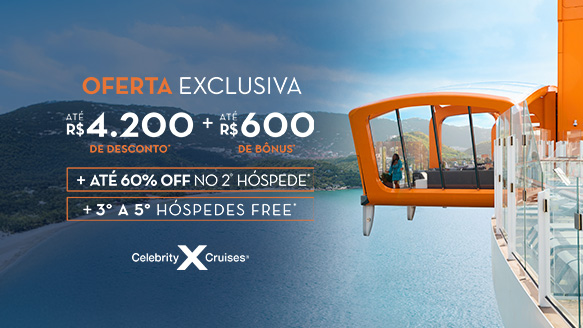 A oferta “3º E 4º HÓSPEDES GRÁTIS”, oferece tarifa do cruzeiro gratuita para 3º e 4º hóspedes com 13 anos completos ou mais até a data de partida do cruzeiro, em saídas de 3 noites ou mais, reservados na mesma cabine que os primeiros dois hóspedes, classificando em uma cabine tripla ou quádrupla. O cruzeiro deve ser reservado entre 06 de fevereiro de 2025 e 23 de fevereiro de 2026, com data de embarque entre 07 de fevereiro de 2026 e 31 de dezembro de 2026. “3º E 4º HÓSPEDES GRÁTIS”, exclui as saídas entre as datas especiais de Ação de Graças (de 19 de novembro a 27 de novembro de 2026); Fim de ano (de 18 de dezembro de 2025 a 5 de janeiro de 2026; de 17 de dezembro de 2026 a 4 de janeiro de 2027); Primavera (de 6 de março a 9 de abril de 2026); Ovation of the Seas no Ano Novo Chinês (de 15 de fevereiro a 18 de fevereiro de 2026); Alasca (de 15 de maio a 11 de setembro de 2026); Verão (de 21 de maio a 4 de setembro de 2026), excluindo o Harmony of the Seas, com saída em 26 de julho de 2026.