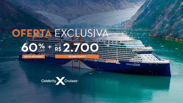 Os valores promocionais da oferta “TARIFAS ESPECIAIS” são em reais e por hóspede em cabine de ocupação dupla garantida* (garante o tipo de cabine contratada). Os percentuais de desconto apresentados aplicam-se para saídas selecionadas e fazem uma comparação com o site https://celebritycruises.com.br/, em saídas com parâmetros similares. Os valores e disponibilidades estão sujeitos a alteração sem prévio aviso. Após o término do período da oferta, caso não seja identificado o pagamento, o desconto poderá ser removido ou a reserva cancelada. As modificações de reservas estarão sujeitas a alterações de tarifas, vigentes no momento do ajuste. Tais tarifas possuem regras específicas de alteração de ocupação, categoria e informações dos hóspedes. Adicionalmente, essas tarifas promocionais não permitem a inclusão de novos hóspedes na reserva ou berço, alteração de nomes de hóspedes, inclusão de serviços adicionais (como, por exemplo, serviços de transfer específicos), alterações de categorias ou alterações de cabines após serem numeradas pela companhia. Para mais informações, entre em contato conosco ou com seu agente de viagens.