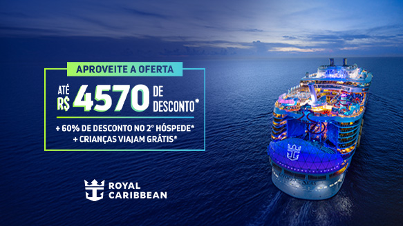 A oferta “Crianças Viajam Grátis”, oferece tarifa do cruzeiro gratuita para 3º e 4º hóspedes com 12 anos completos ou menos até a data de partida do cruzeiro, em saídas de 3 noites ou mais, reservados na mesma cabine que os primeiros dois hóspedes, classificando em uma cabine tripla ou quádrupla. O cruzeiro deve ser reservado entre 09 de dezembro de 2025 e 01 de janeiro de 2026, com data de embarque a partir de 10 de dezembro de 2025. “Crianças Viajam Grátis”, exclui as saídas entre as datas especiais de 19 de novembro a 27 de novembro de 2026, Navegações de Férias de 18 de dezembro de 2025 a 5 de janeiro de 2026; de 17 de dezembro de 2026 a 4 de janeiro de 2027; de 16 de dezembro de 2027 a 05 de janeiro de 2028, Navegações de Primavera de 6 de março a 9 de abril de 2026 ; de 5 de março e 1 de abril de 2027; de 03 de março a 31 de março de 2028, Semana Santa/Páscoa de 07 de abril a 17 de abril de 2028, Navegações pelo Alasca de 15 de maio a 11 de setembro de 2026; de 14 de maio a 17 de setembro de 2027, Navegações de Verão de 21 de maio e 4 de setembro de 2026 excluindo o Harmony of the Seas que navegará em 26 de julho de 2026; de 21 de maio e 4 de setembro de 2026; de 28 de maio a 20 de agosto de 2027, Navegações de Ano Novo Chinês a bordo do Ovation of the Seas de 15 a 18 de fevereiro de 2026. Impostos, taxas e despesas portuárias são adicionais e se aplicam a todos os hóspedes. As taxas de serviço e de porto são adicionais e se aplicam a todos os passageiros.