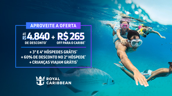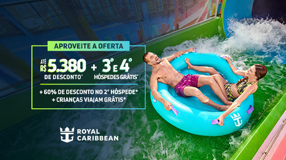 A oferta “Crianças Viajam Grátis”, oferece tarifa do cruzeiro gratuita para 3º e 4º hóspedes com 12 anos completos ou menos até a data de partida do cruzeiro, em saídas de 3 noites ou mais, reservados na mesma cabine que os primeiros dois hóspedes, classificando em uma cabine tripla ou quádrupla. O cruzeiro deve ser reservado entre 02 de janeiro de 2026 e 01 de fevereiro de 2026, com data de embarque a partir de 03 de janeiro de 2026. “Crianças Viajam Grátis”, exclui as saídas entre as datas especiais de 19 de novembro a 27 de novembro de 2026; de 18 de novembro a 26 de novembro de 2027, Navegações de Férias de 18 de dezembro de 2025 a 5 de janeiro de 2026; de 17 de dezembro de 2026 a 4 de janeiro de 2027; de 16 de dezembro de 2027 a 05 de janeiro de 2028, Navegações de Primavera de 6 de março a 9 de abril de 2026 ; de 5 de março a 1 de abril de 2027; de 03 de março a 31 de março de 2028, Semana Santa/Páscoa de 07 de abril a 17 de abril de 2028, Navegações pelo Alasca de 15 de maio a 11 de setembro de 2026; de 14 de maio a 17 de setembro de 2027, Navegações de Verão de 21 de maio a 4 de setembro de 2026 excluindo o Harmony of the Seas que navegará em 26 de julho de 2026; de 21 de maio a 4 de setembro de 2026; de 28 de maio a 20 de agosto de 2027, Navegações de Ano Novo Chinês a bordo do Ovation of the Seas de 15 a 18 de fevereiro de 2026. Impostos, taxas e despesas portuárias são adicionais e se aplicam a todos os hóspedes. As taxas de serviço e de porto são adicionais e se aplicam a todos os passageiros.
