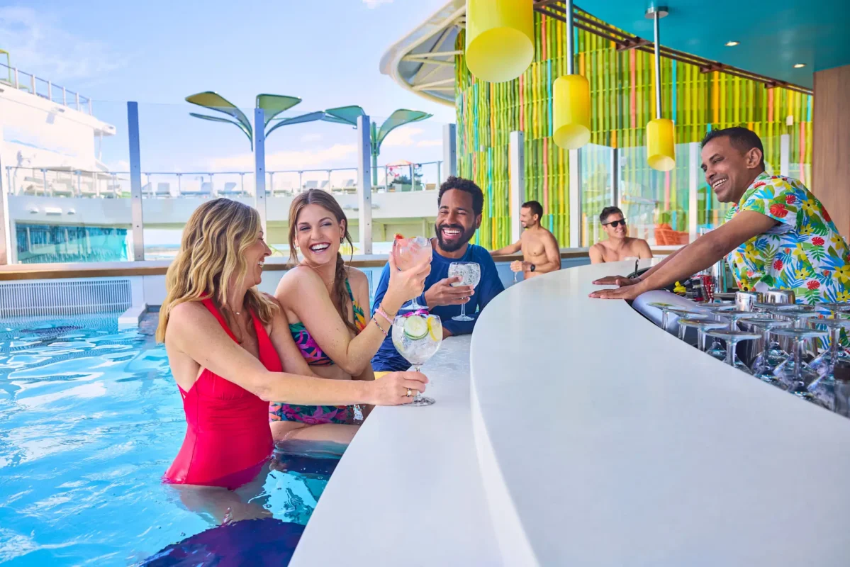 Vá até o bar aquático Swim & Tonic℠ para bebidas geladas e ritmos ensolarados. Esta é a maneira mais legal de beber. Sente-se no bar ou relaxe em uma das espreguiçadeiras na água