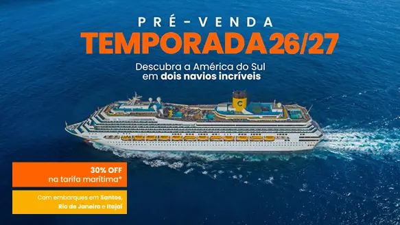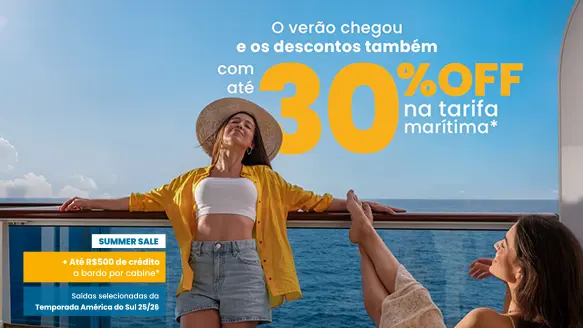 APROVEITE ATÉ 30% OFF NA TARIFA MARÍTIMA E ATÉ R$500 DE CRÉDITO A BORDO